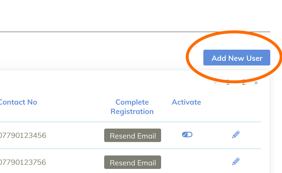 1. Go to the User list for your store and select “Add New User” via the button at the top right of the screen: