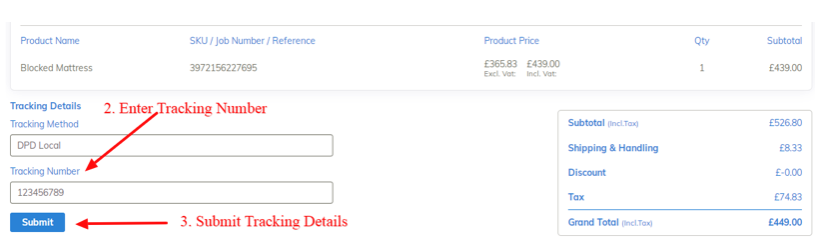 Step 2 – Under the product details a section will be displayed called ‘Tracking Details’
