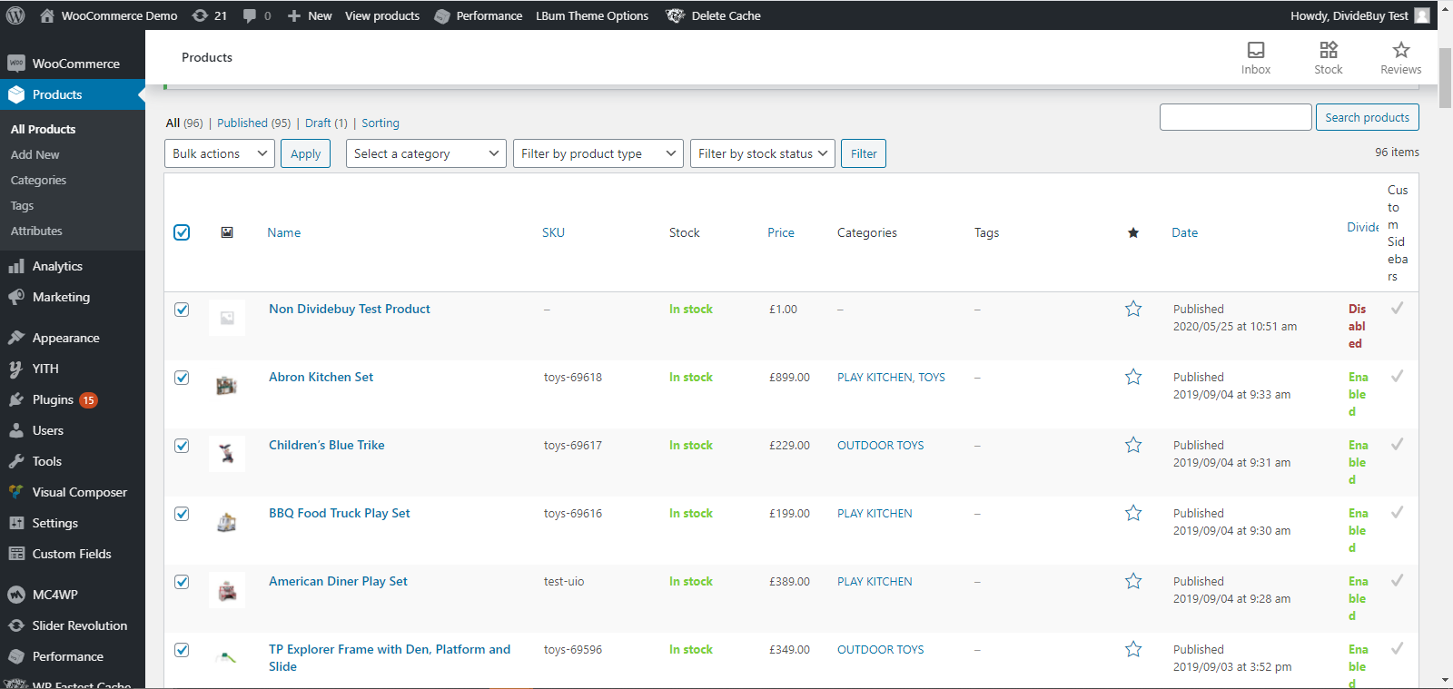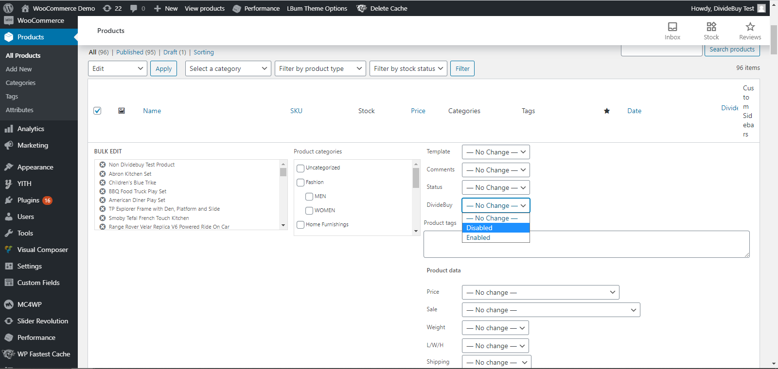 3. Next to DivideBuy select either DivideBuy enabled or disabled