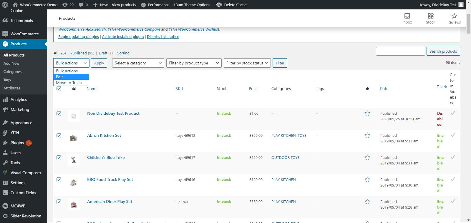 1. Select products you wish to be enabled / disabled.